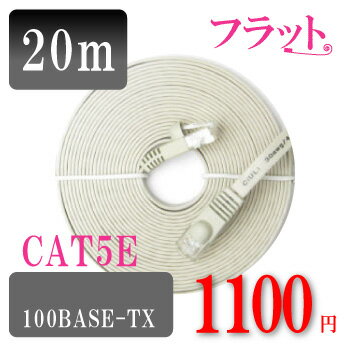 スーパーフラットLANケーブル より線使用で使いやすい!ストレート LANケーブル フラットケーブル20m カテゴリ5e(cat5e)アイボリー マミコム[メ1]【あす楽対応】【最安値保証】